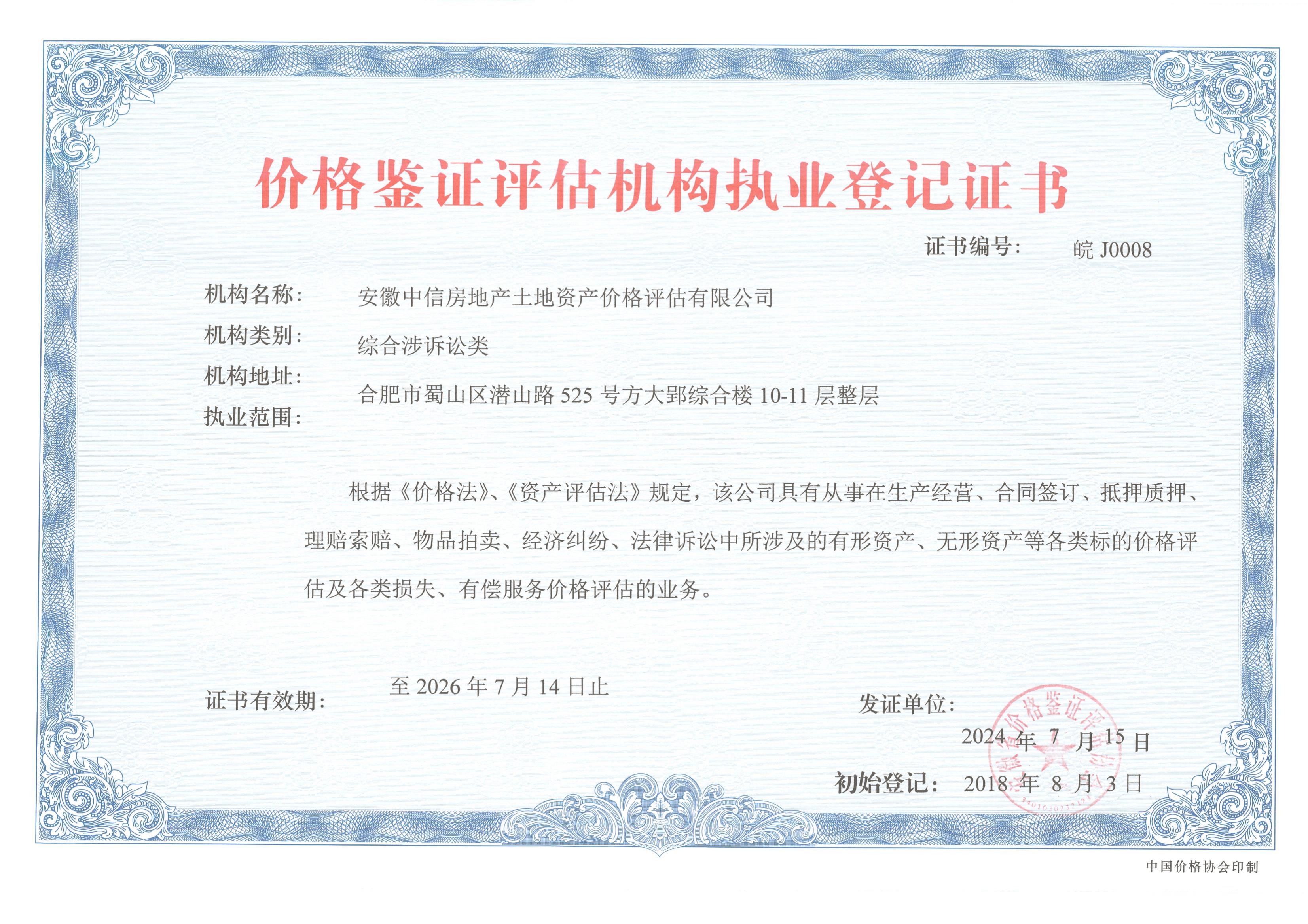 價格評估機(jī)構(gòu)執(zhí)業(yè)登記證書