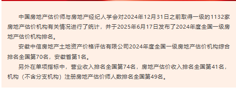 喜報(bào)丨我公司在2024年度房地產(chǎn)評(píng)估行業(yè)排名中取得佳績(jī)