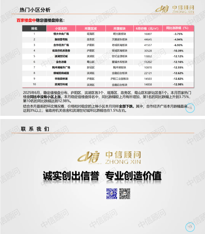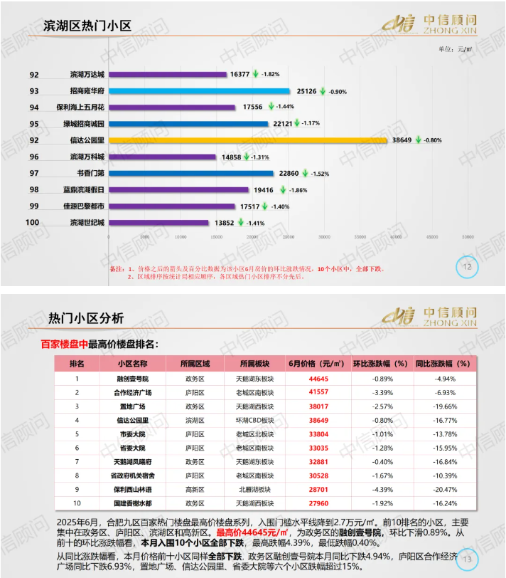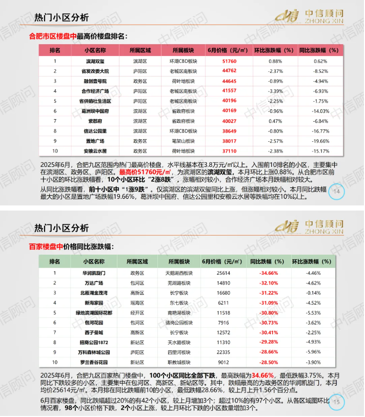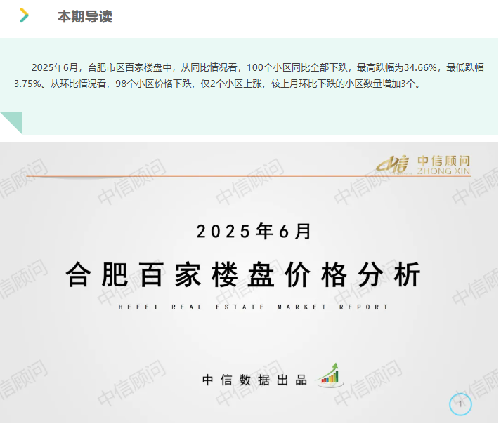 二手房市場 | 2025年6月,合肥百家樓盤環比98下跌2上漲,下跌小區數量有增加